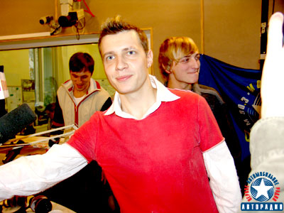 Президент ВКПМ Александр Варин и Алексей Булдаков в эфирной студии Авторадио